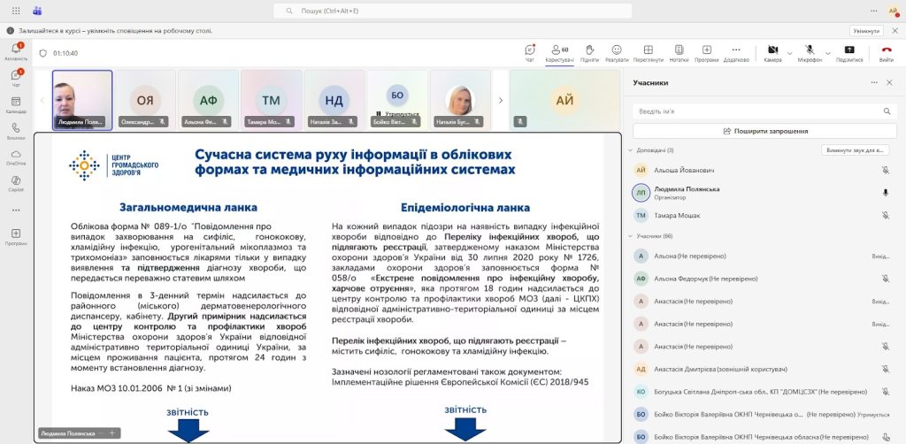 До заходу долучилися працівники обласних центрів контролю та профілактики хвороб та закладів охорони здоров’я, які на рівні регіону здійснюють збір, узагальнення та звітність про інфекції, які передаються переважно статевим шляхом (ІПСШ).