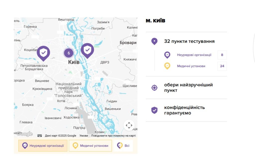 - скористатися картою на сайті, щоб знайти найближчий до вас пункт тестування,