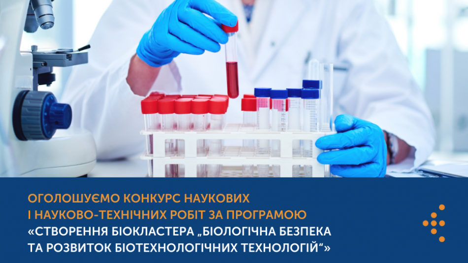 Оголошуємо Конкурс наукових і науково-технічних робіт за програмою «Створення біокластера „Біологічна безпека та розвиток біотехнологічних технологій“»