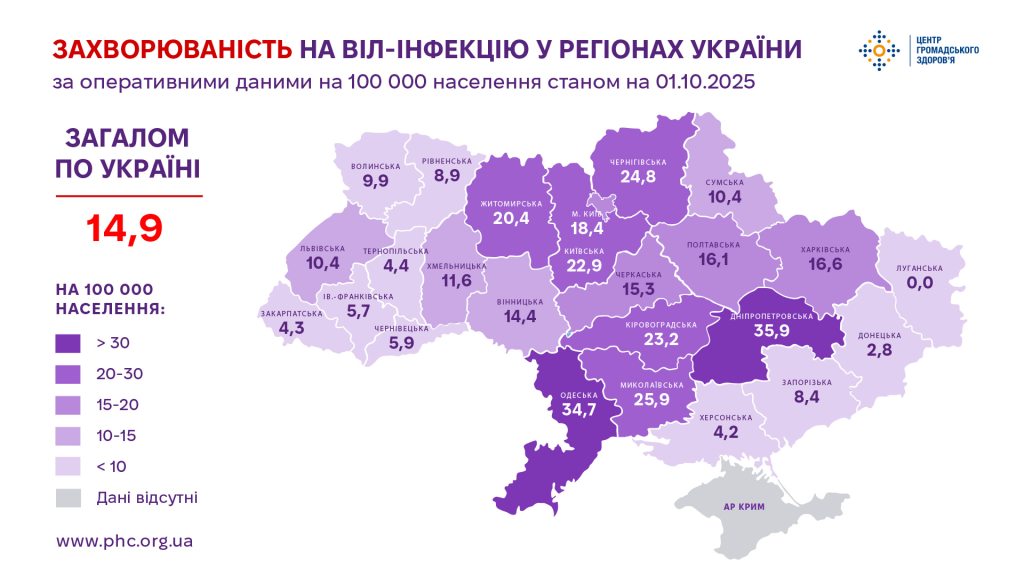 Епідемічна ситуація з ВІЛ-інфекції в Україні станом на 01.10.2025