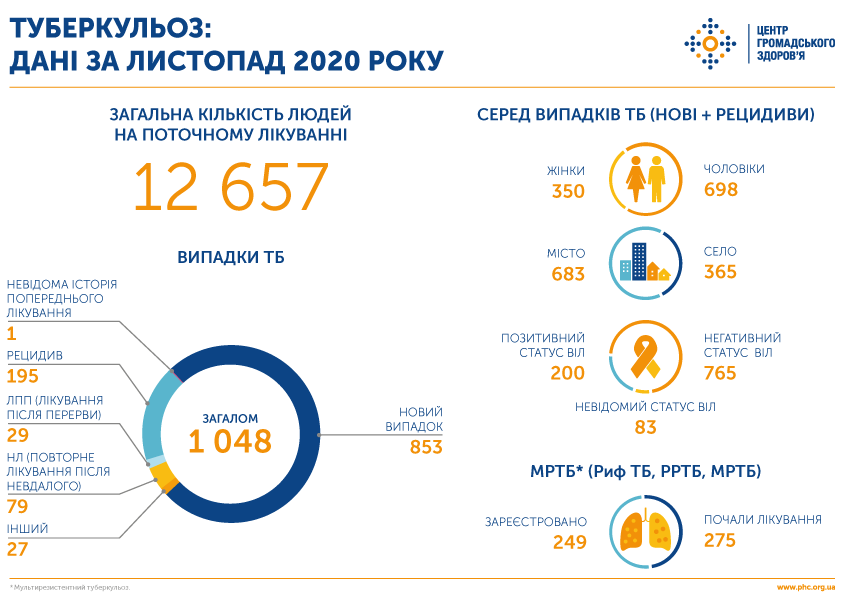 Загалом у листопаді 2020 року від туберкульозу лікувалися 12 657 людей.