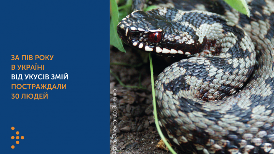 Станом на 30 червня 2021 року в Україні зареєстрували 30 звернень по медичну допомогу через ураження зміїною отрутою. Серед постраждалих 10 дітей до 17 років і 10 жінок. Зокрема, у червні зафіксовано 8 звернень.