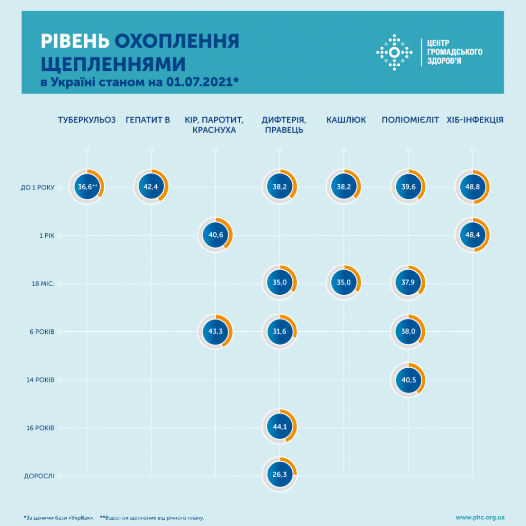 Україна сьогодні близька до середніх цифр у світі по охопленню вакцинацією, але все одно має найнижчі охоплення в порівнянні з європейським регіоном. Це створює критичну загрозу для загального стану здоров’я населення країни.