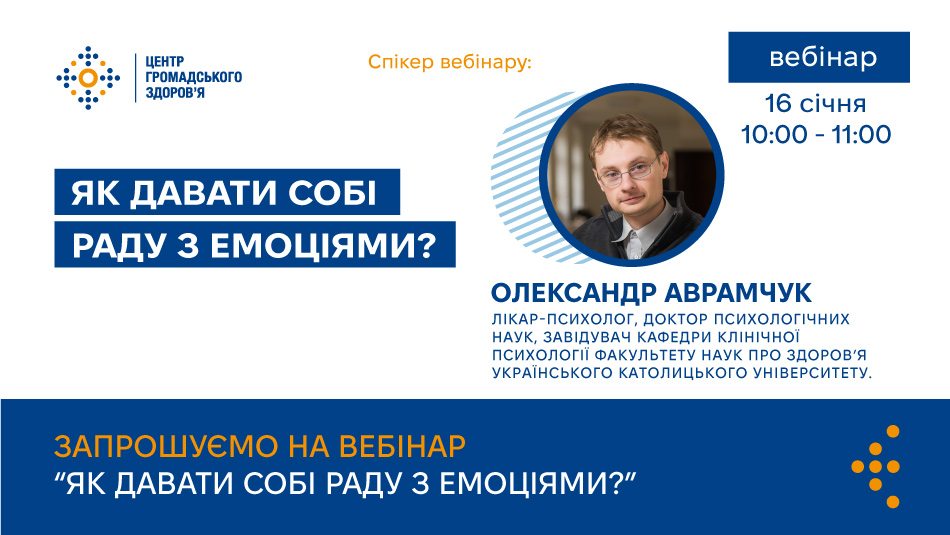 Центр громадського здоров’я запрошує працівників центрів контролю та профілактики хвороб, відповідальних за психічне здоровʼя, та всіх охочих узяти участь у вебінарі «Як давати собі раду з емоціями?»